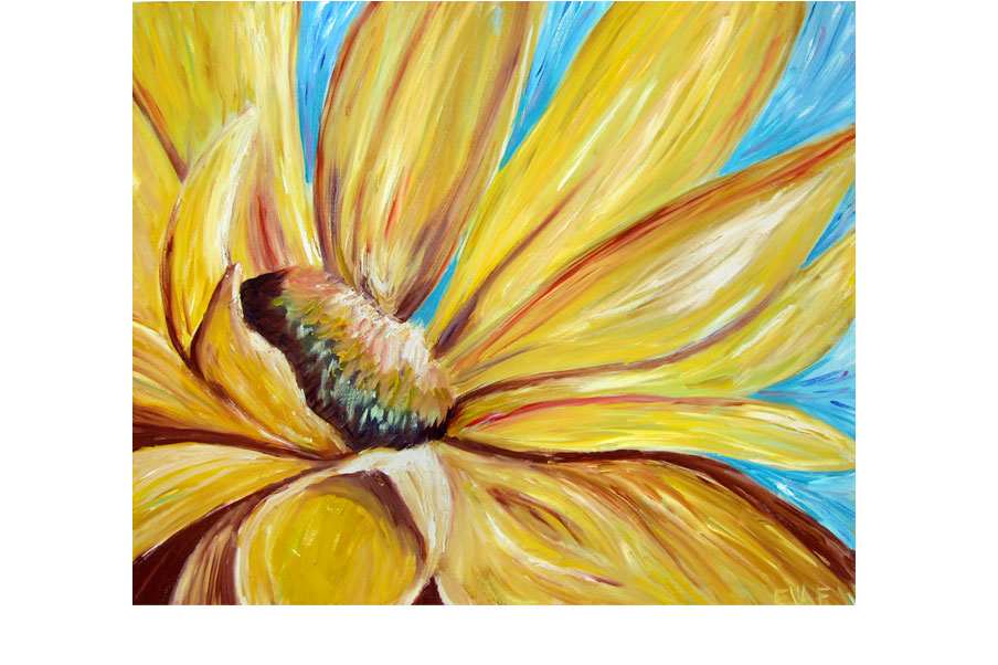 SUNFLOWER PAINTING Painting of a sunflower using bright colors and focusing on the significant details of the flower.
